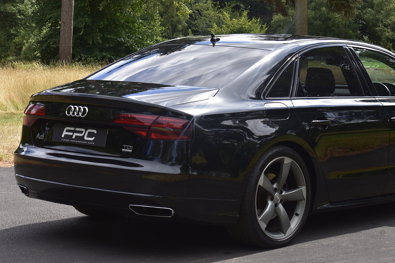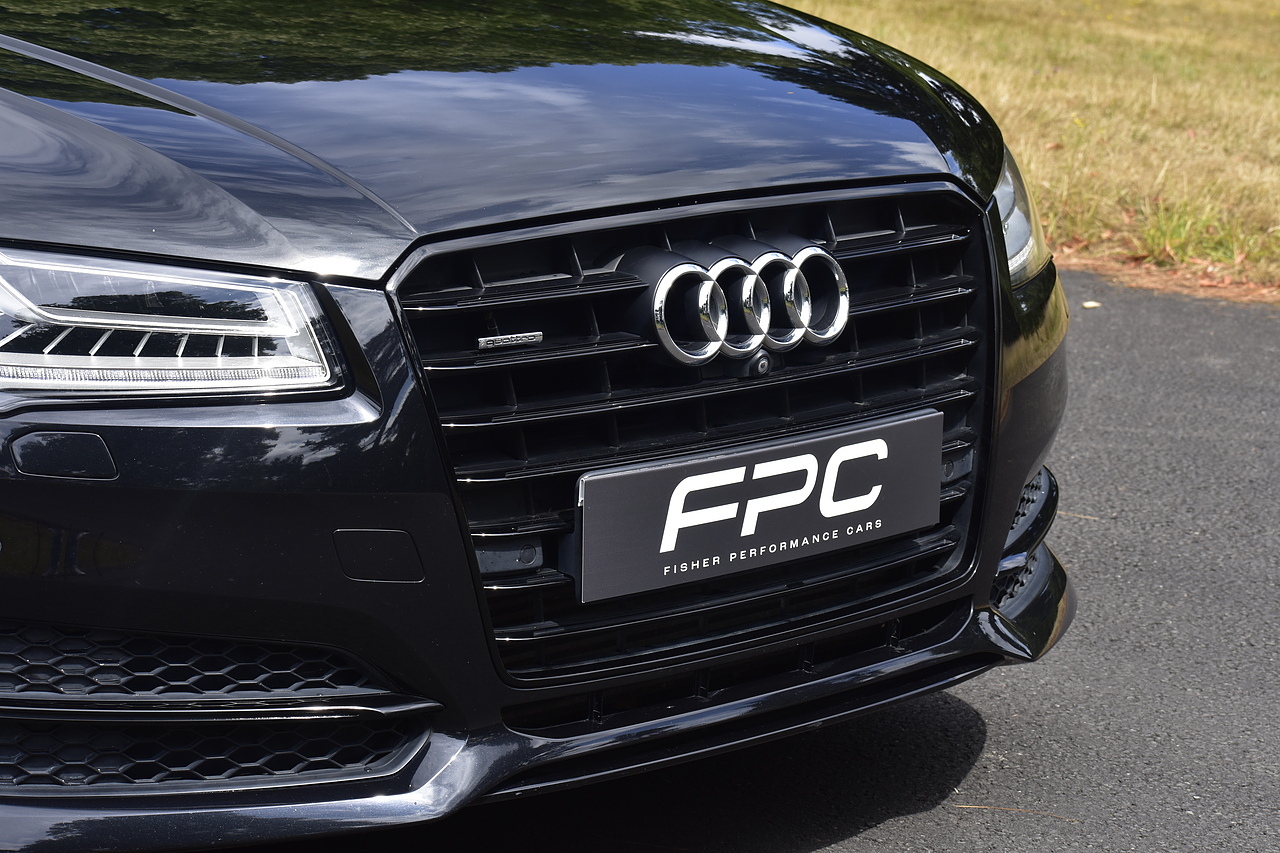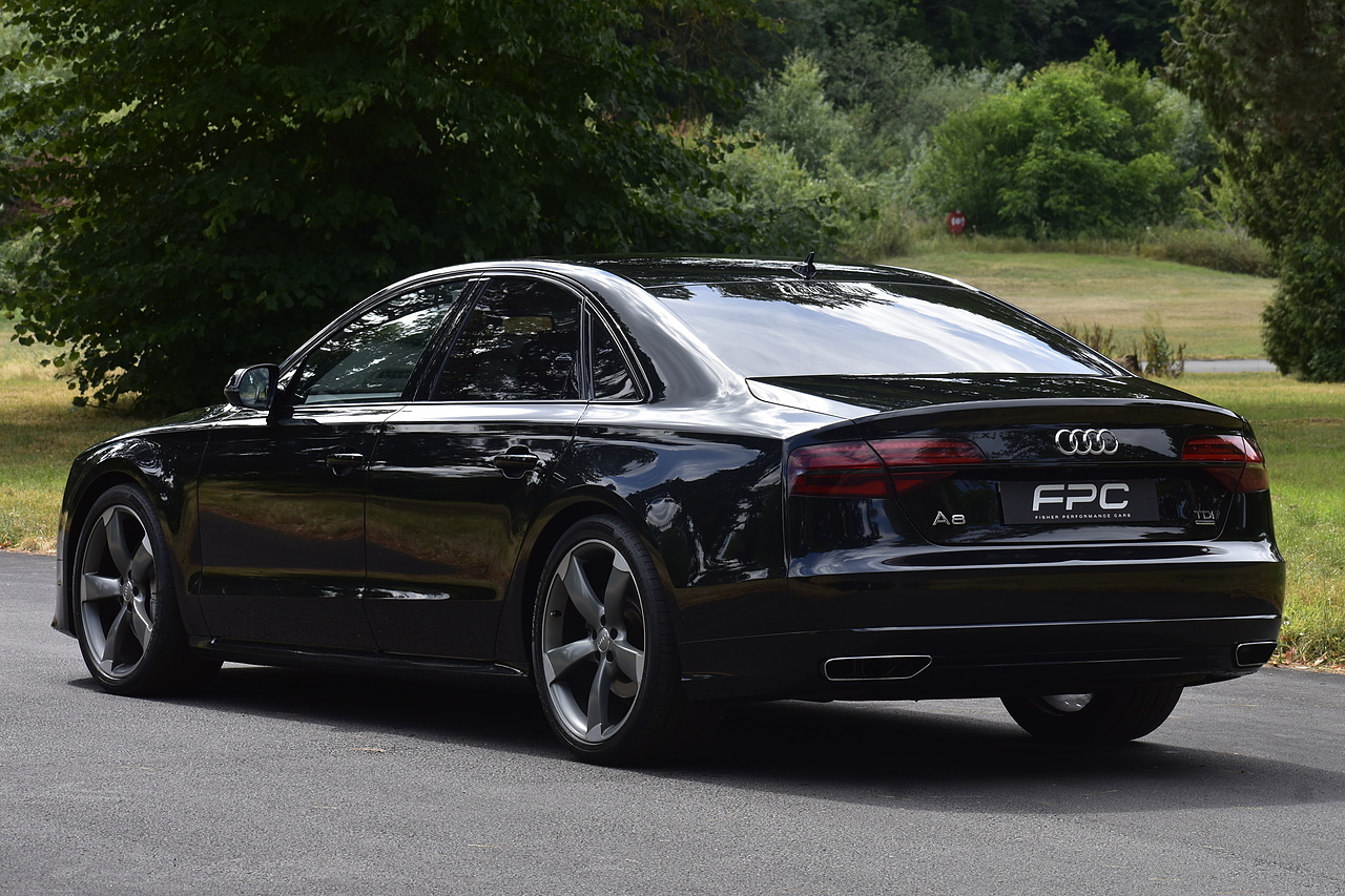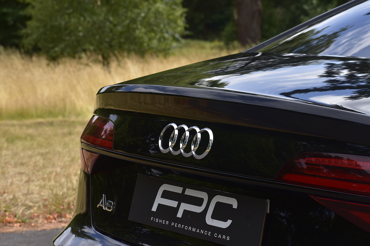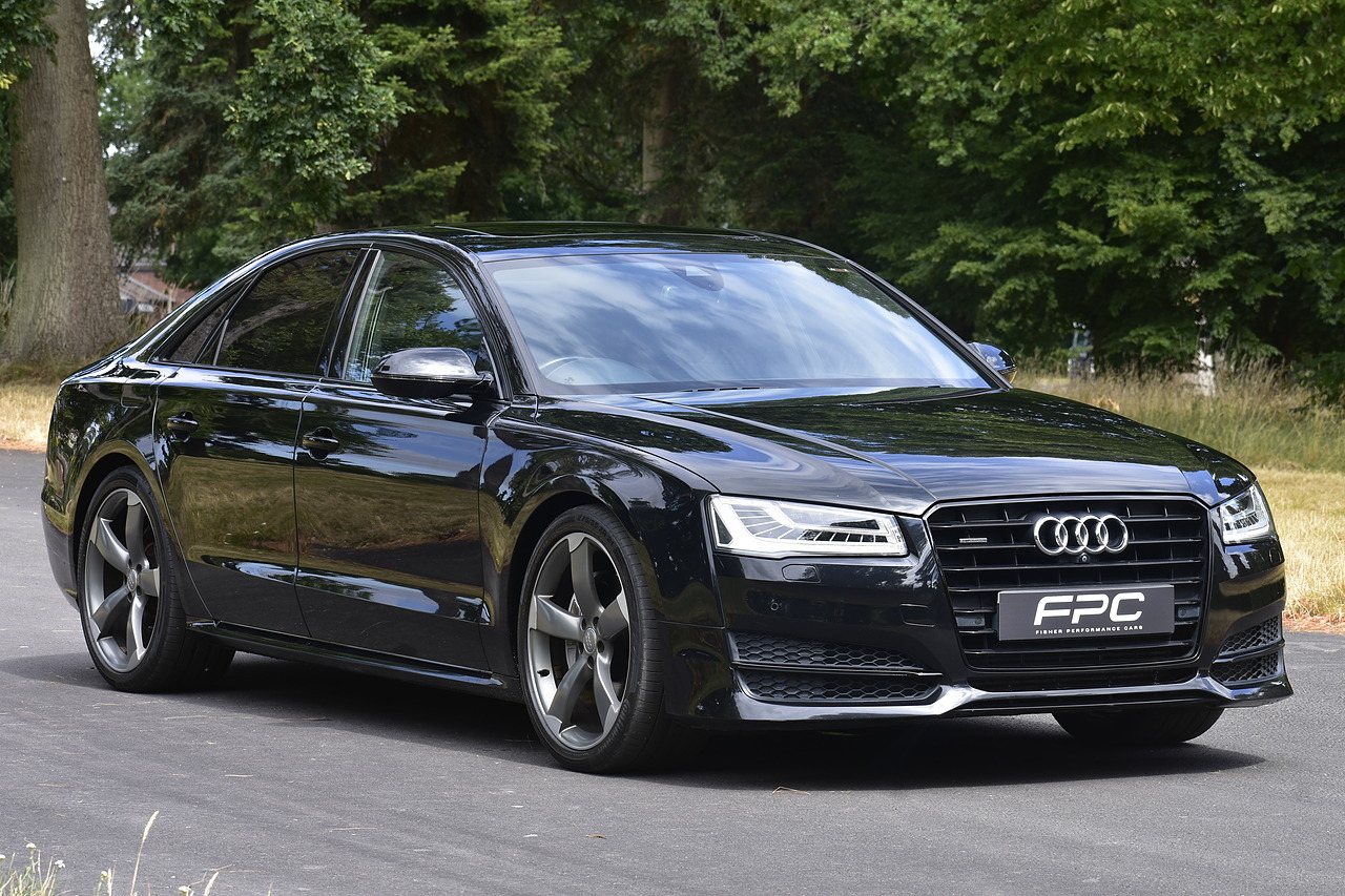 Fisher Performance Cars are proud to offer for sale this superb Audi A8 Black Edition finished in Mythos Black over Black Valcona Comfort Seats. This vehicle boasts only 2 careful owners from new and is complimented with a superb service record, as shown below. It is presented in lovely condition throughout with only minor age commensurate wear. It is specified with an Electric Glass sunroof, Bose surround sound system (STUNNING QUALITY), heated rear seats and Deluxe 4-Zone Climate.
