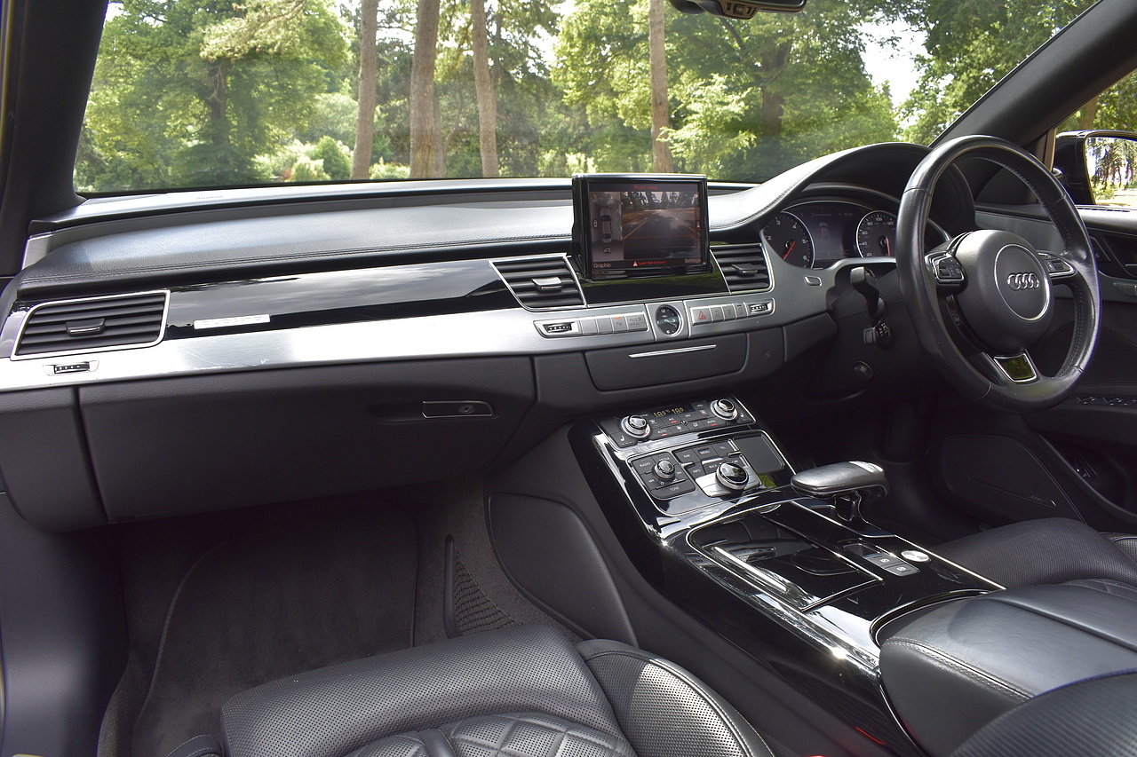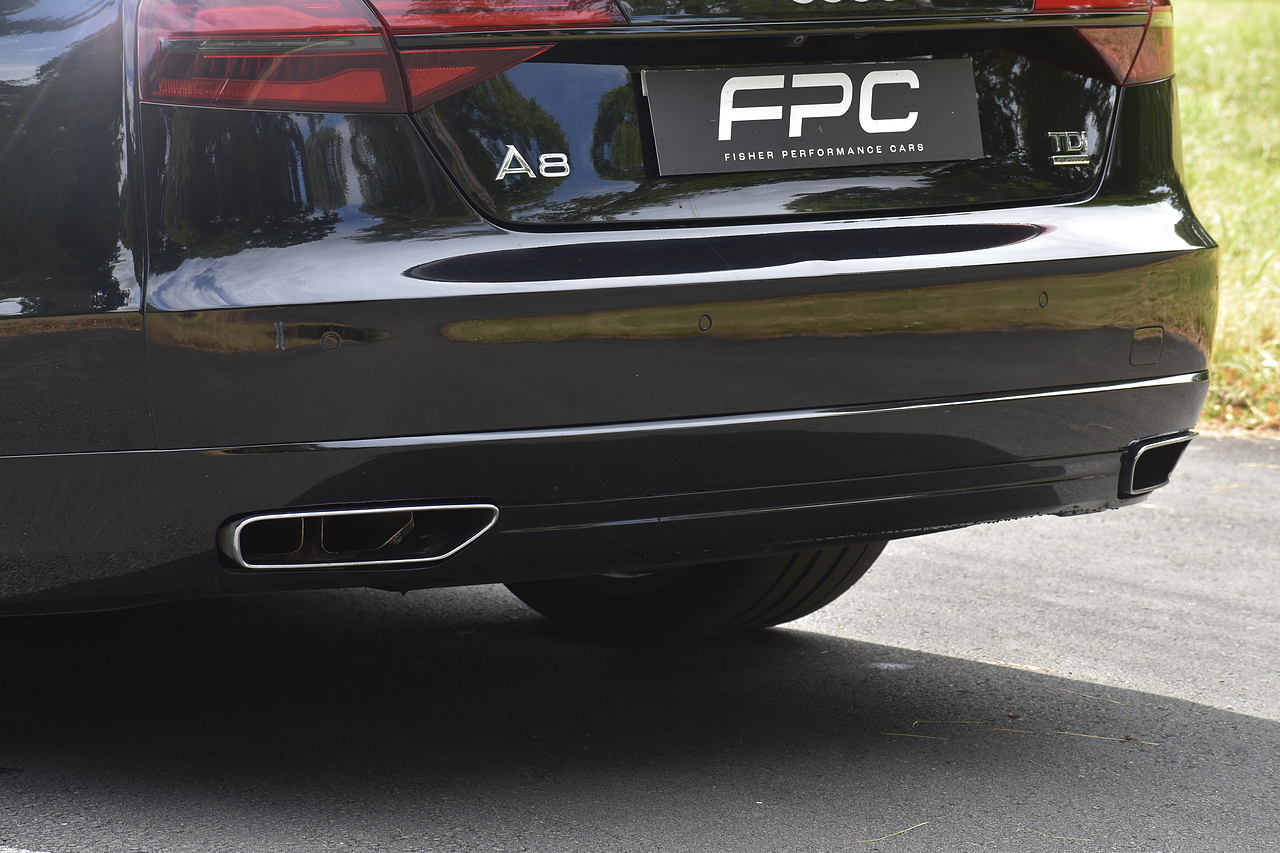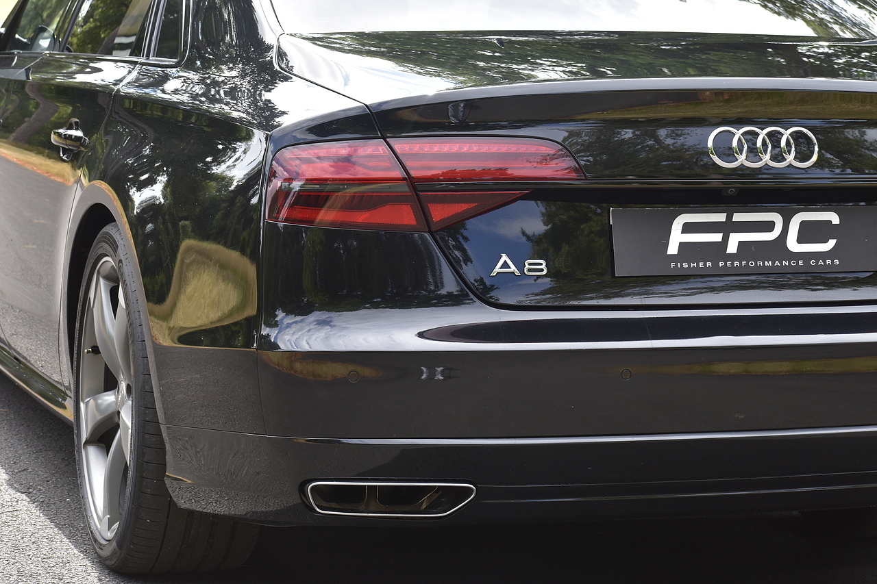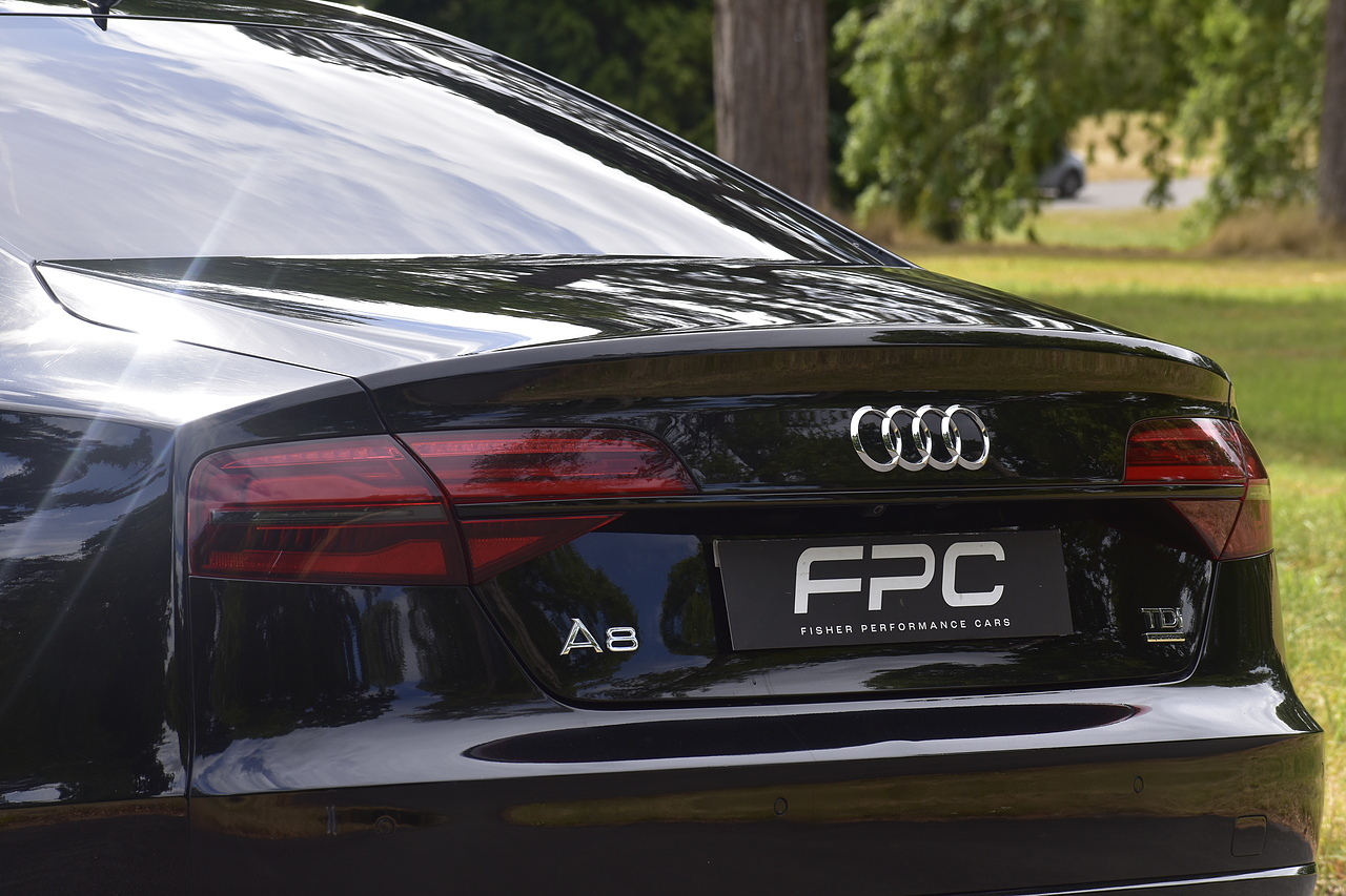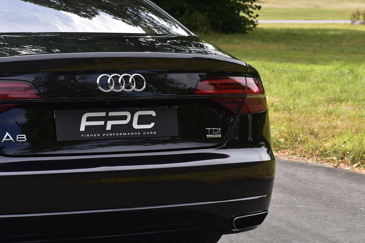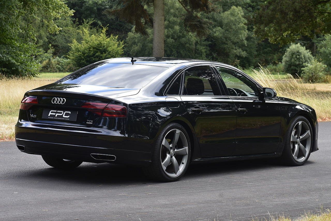 Fisher Performance Cars are proud to offer for sale this superb Audi A8 Black Edition finished in Mythos Black over Black Valcona Comfort Seats. This vehicle boasts only 2 careful owners from new and is complimented with a superb service record, as shown below. It is presented in lovely condition throughout with only minor age commensurate wear. It is specified with an Electric Glass sunroof, Bose surround sound system (STUNNING QUALITY), heated rear seats and Deluxe 4-Zone Climate.