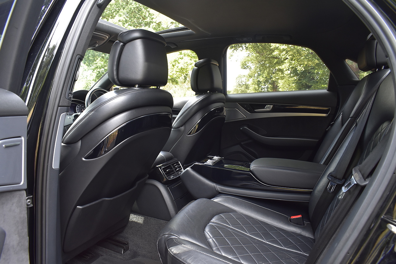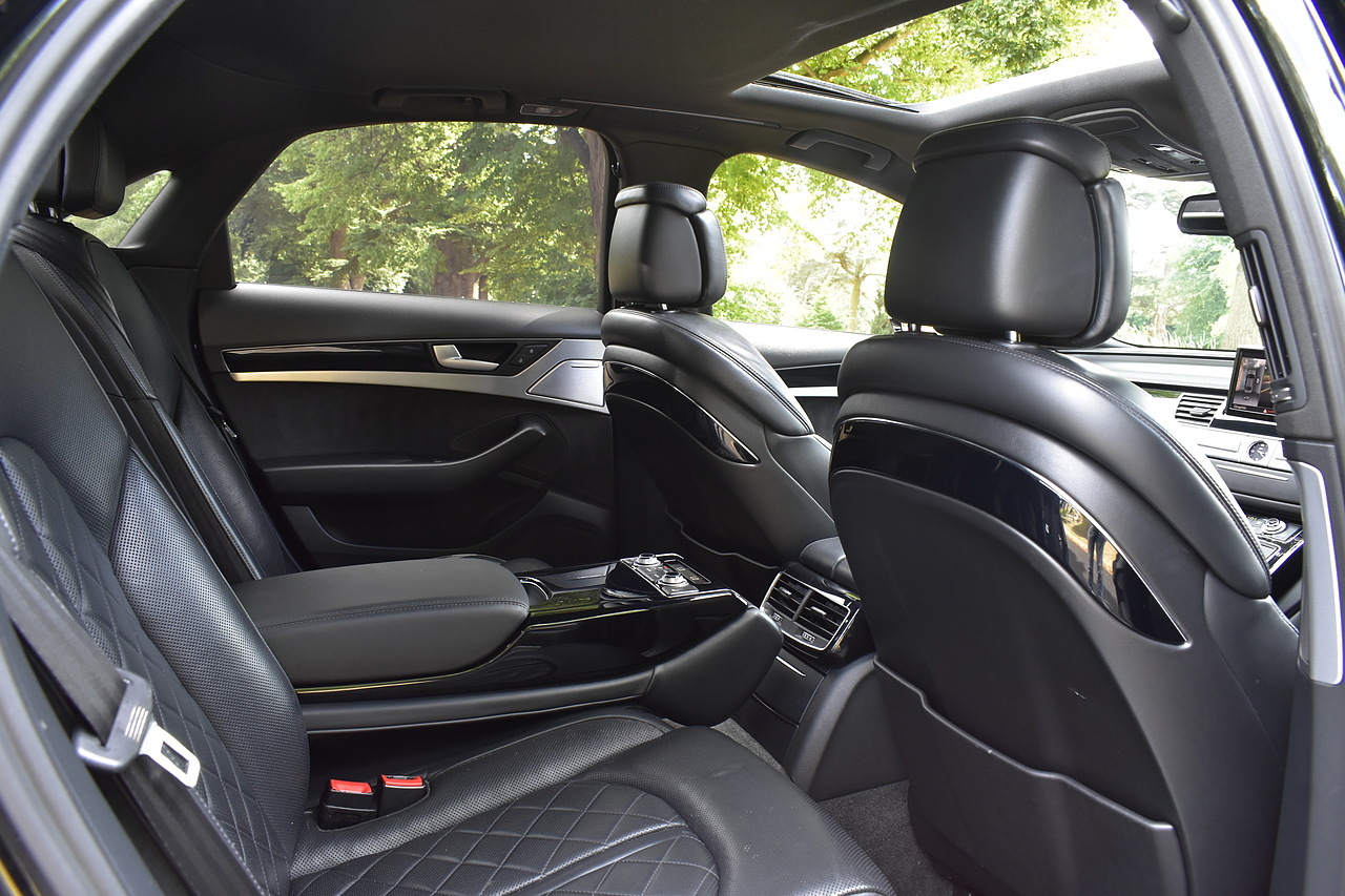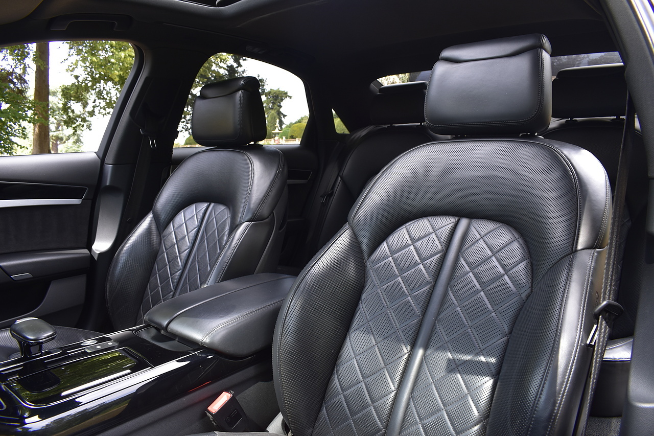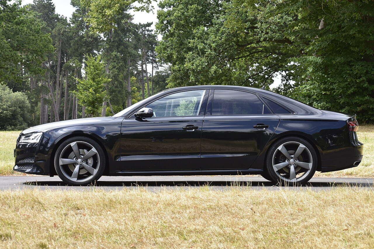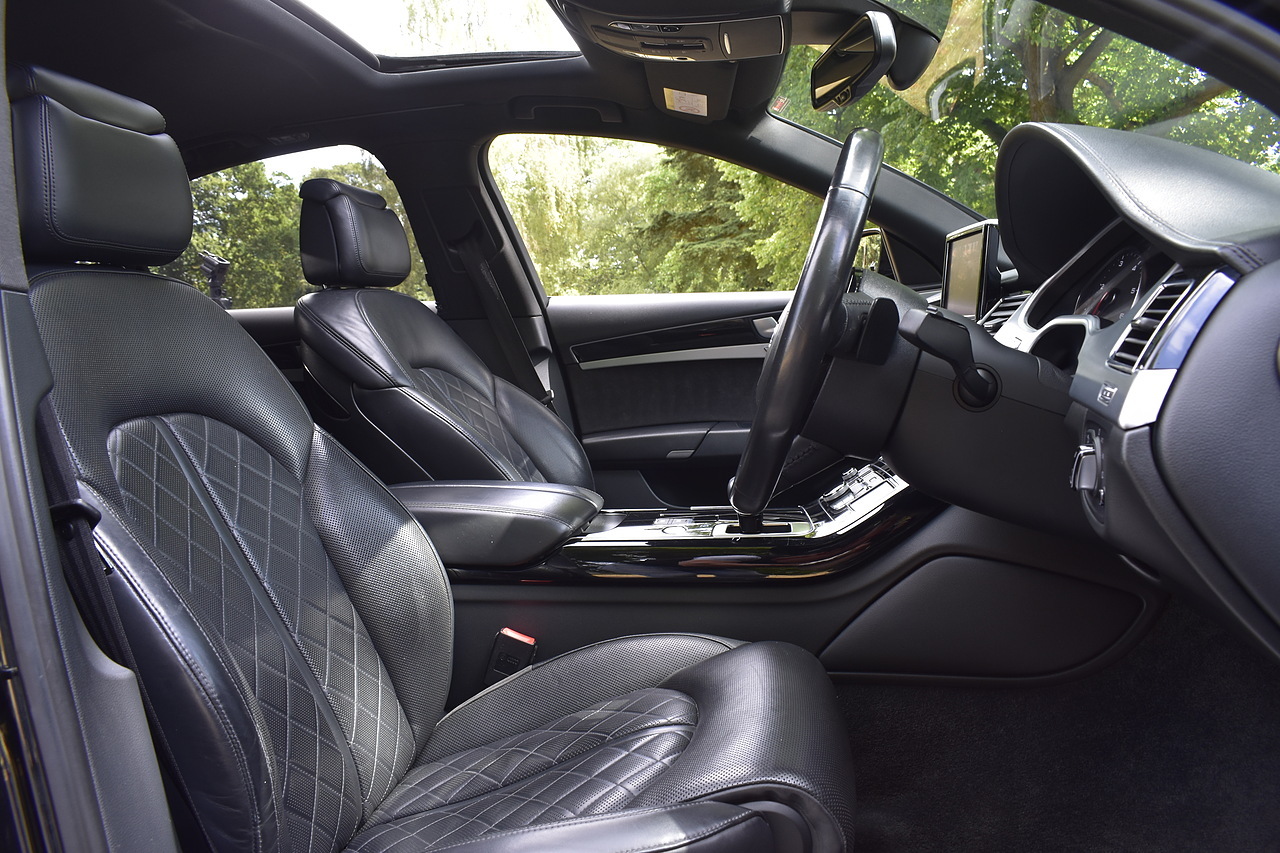 Fisher Performance Cars are proud to offer for sale this superb Audi A8 Black Edition finished in Mythos Black over Black Valcona Comfort Seats. This vehicle boasts only 2 careful owners from new and is complimented with a superb service record, as shown below. It is presented in lovely condition throughout with only minor age commensurate wear. It is specified with an Electric Glass sunroof, Bose surround sound system (STUNNING QUALITY), heated rear seats and Deluxe 4-Zone Climate.