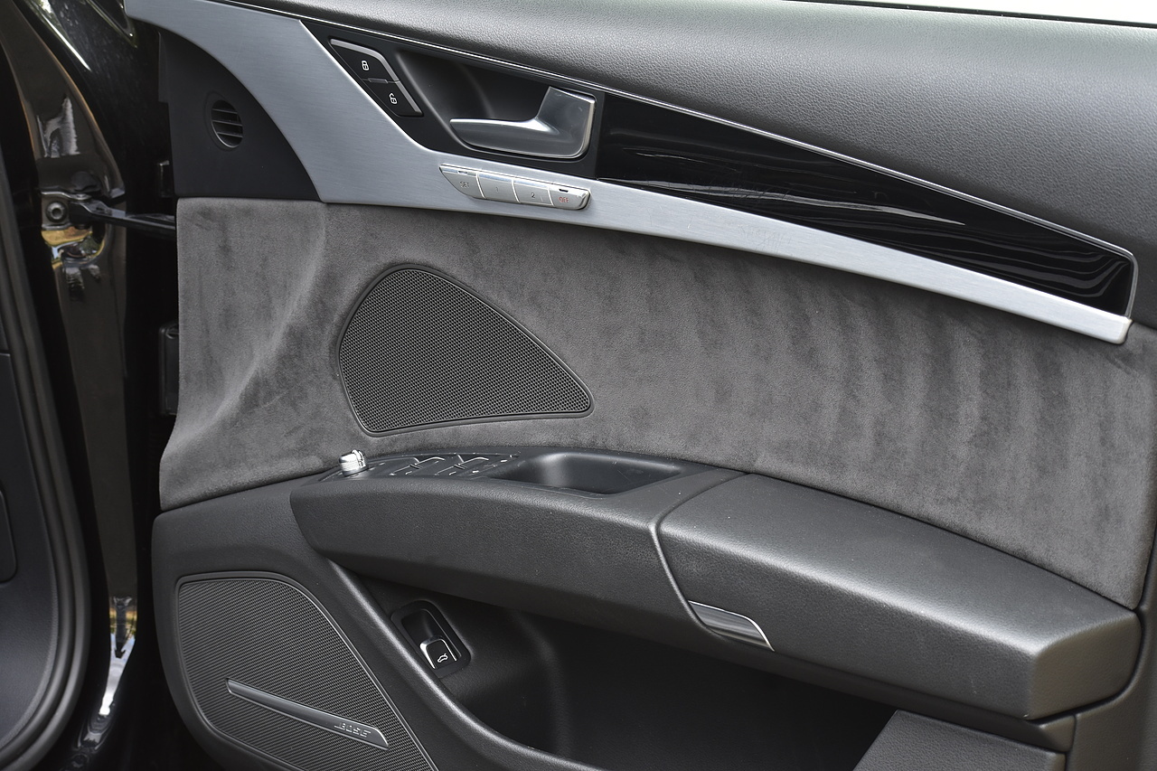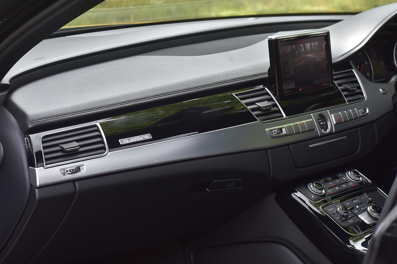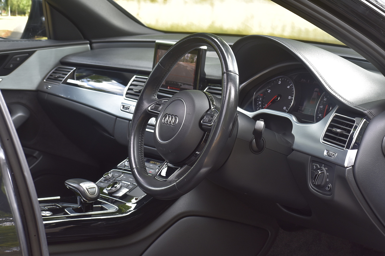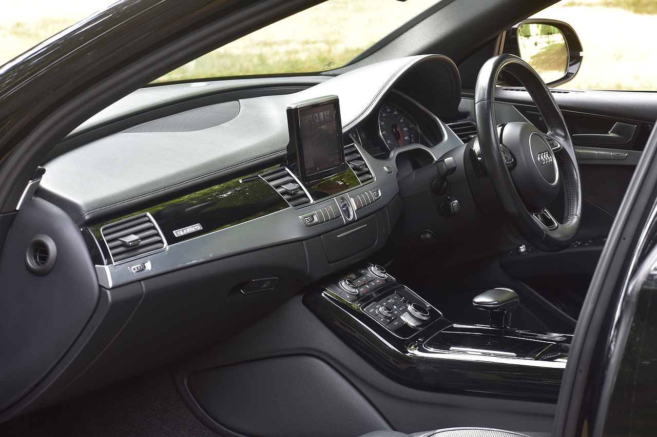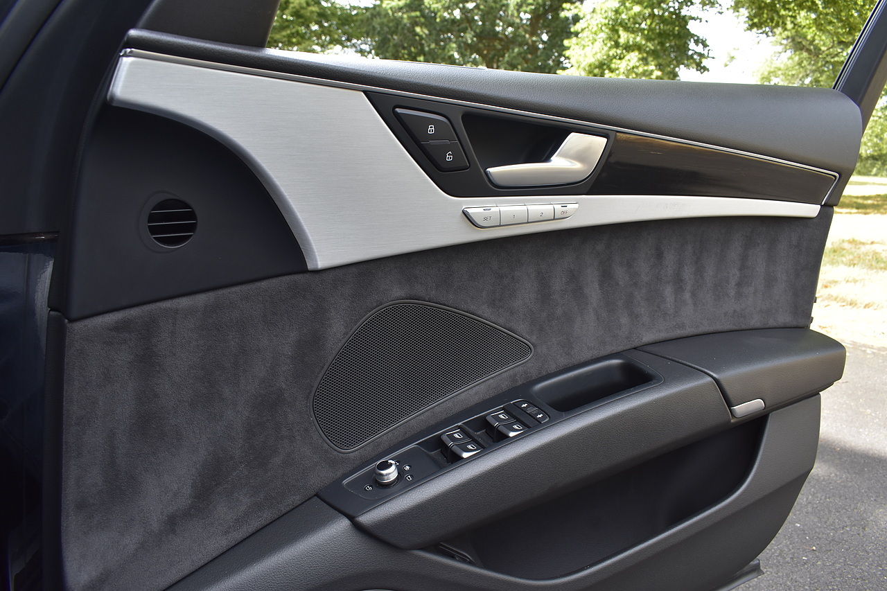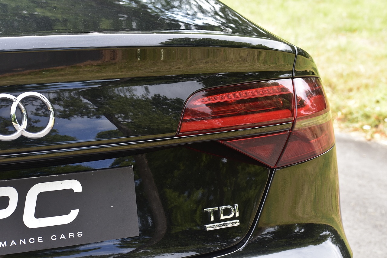 Fisher Performance Cars are proud to offer for sale this superb Audi A8 Black Edition finished in Mythos Black over Black Valcona Comfort Seats. This vehicle boasts only 2 careful owners from new and is complimented with a superb service record, as shown below. It is presented in lovely condition throughout with only minor age commensurate wear. It is specified with an Electric Glass sunroof, Bose surround sound system (STUNNING QUALITY), heated rear seats and Deluxe 4-Zone Climate.