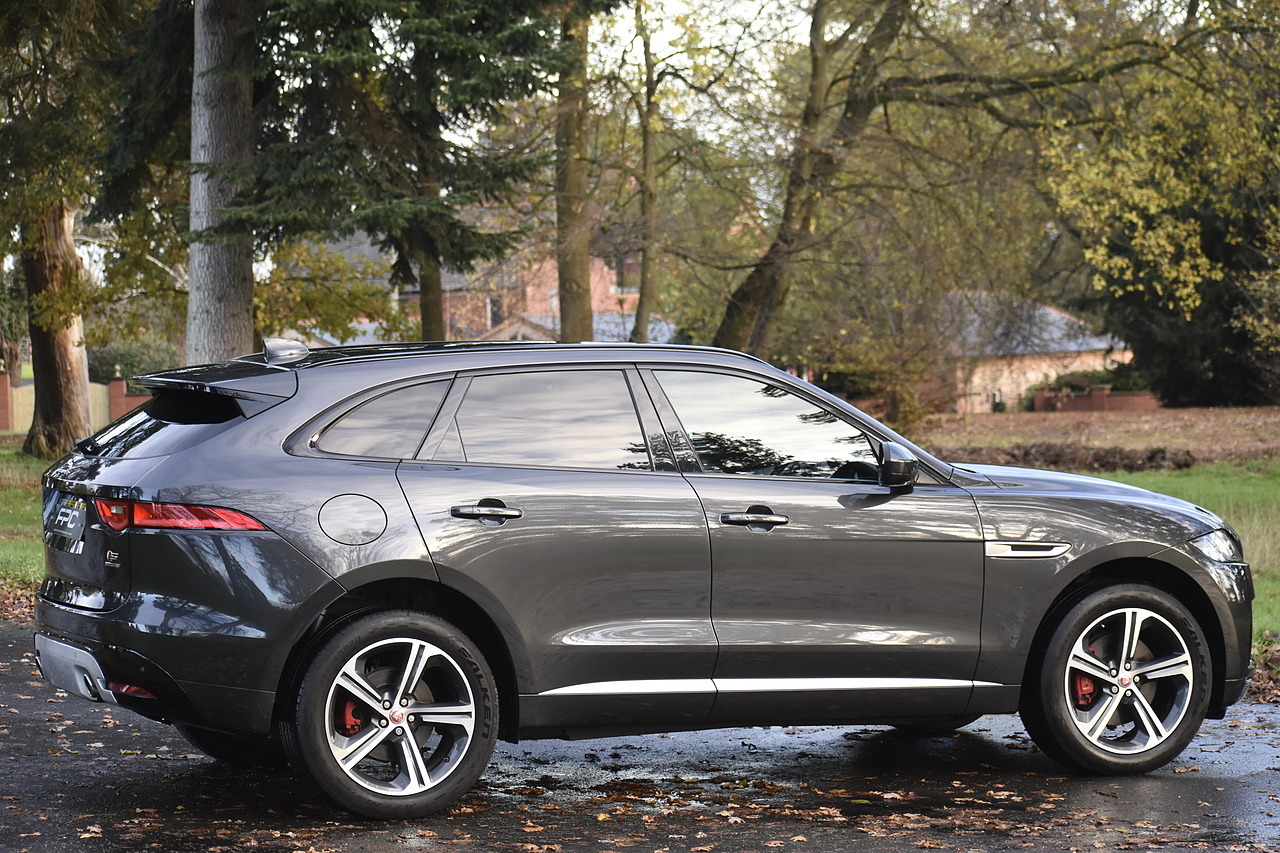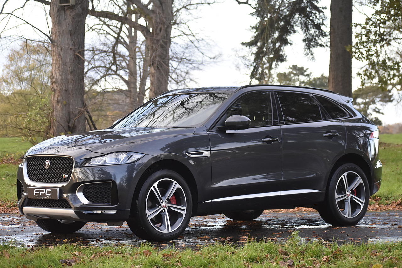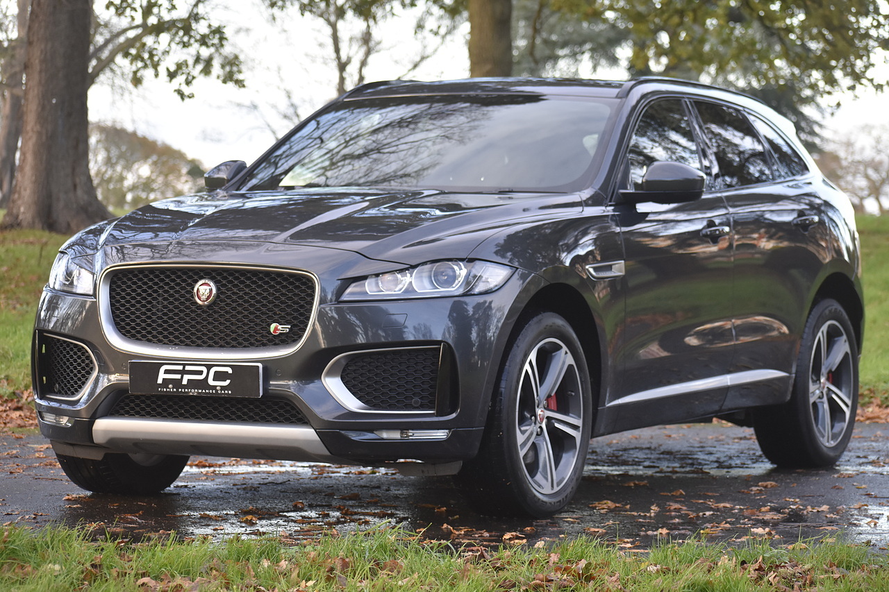 Fisher Performance Cars are proud to offer for sale this wonderful Jaguar F-Pace V6 S finished in Carpathian Grey metallic over Ebony leather interior. This car is presented very well throughout and boasts an excellent service record entirely with Jaguar up until October of 2025 where the cambelt was renewed as well. This car features Panoramic Sunroof, Heated steering wheel, Touch Pro infotainment with Meridian sound and Interactive Drivers display!