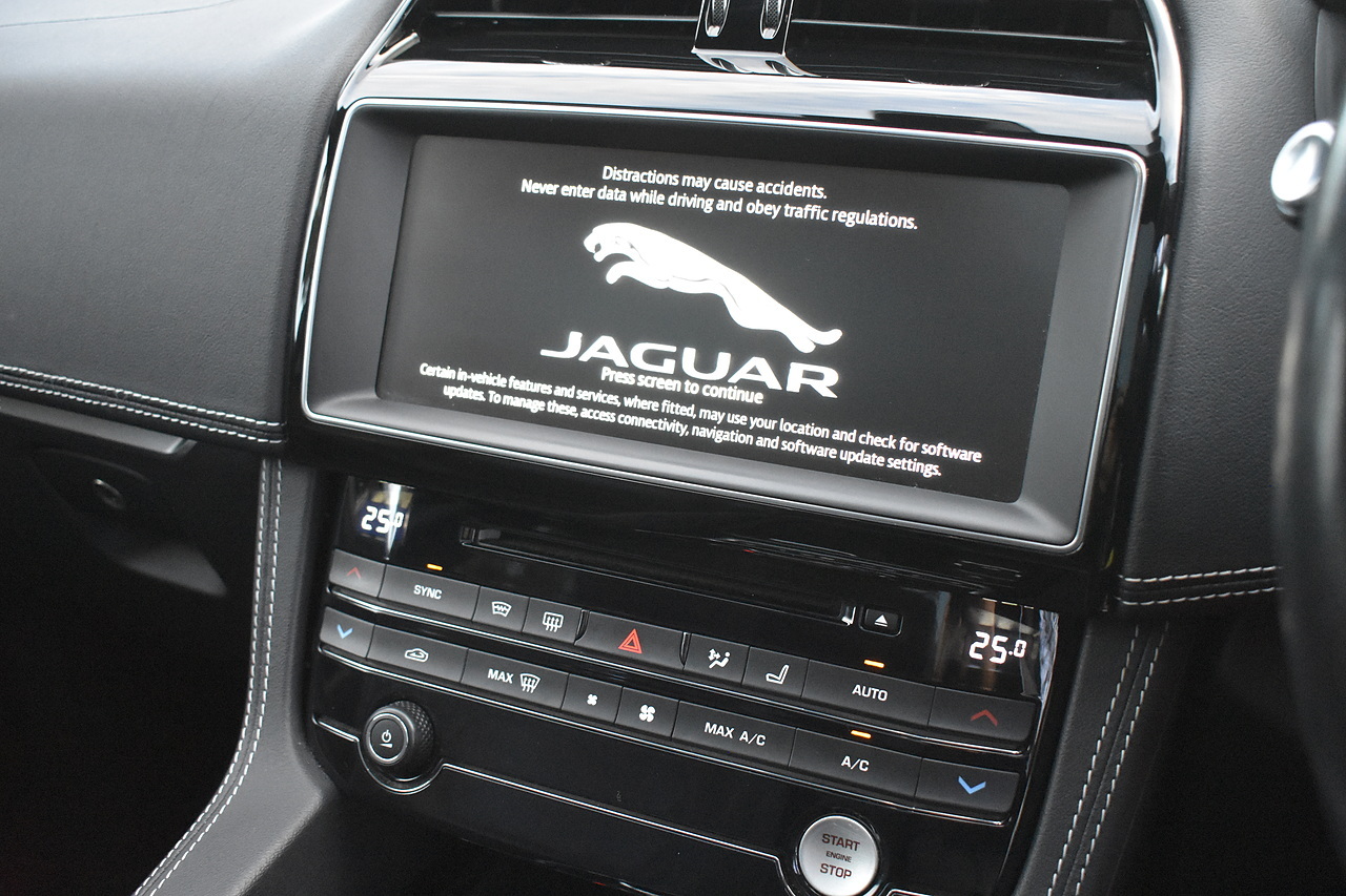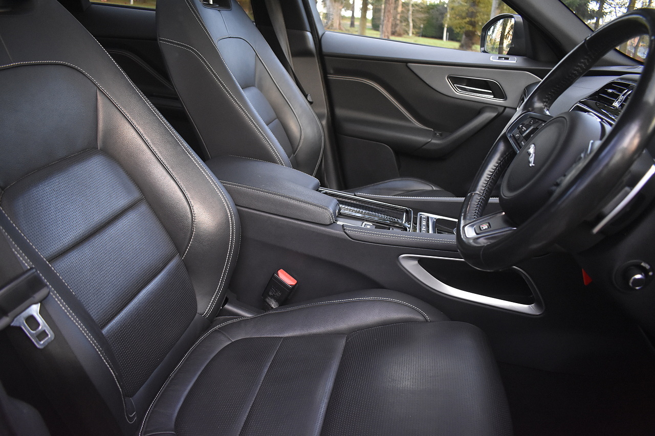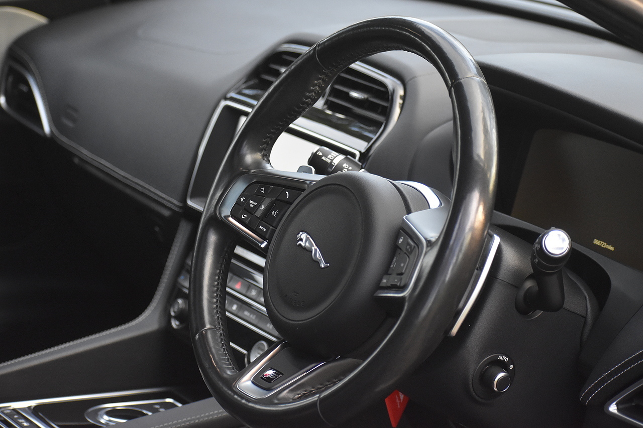 Fisher Performance Cars are proud to offer for sale this wonderful Jaguar F-Pace V6 S finished in Carpathian Grey metallic over Ebony leather interior. This car is presented very well throughout and boasts an excellent service record entirely with Jaguar up until October of 2025 where the cambelt was renewed as well. This car features Panoramic Sunroof, Heated steering wheel, Touch Pro infotainment with Meridian sound and Interactive Drivers display!
