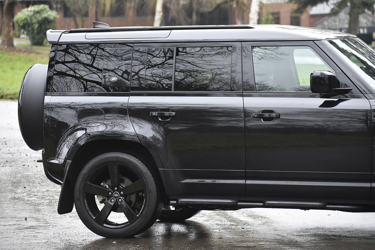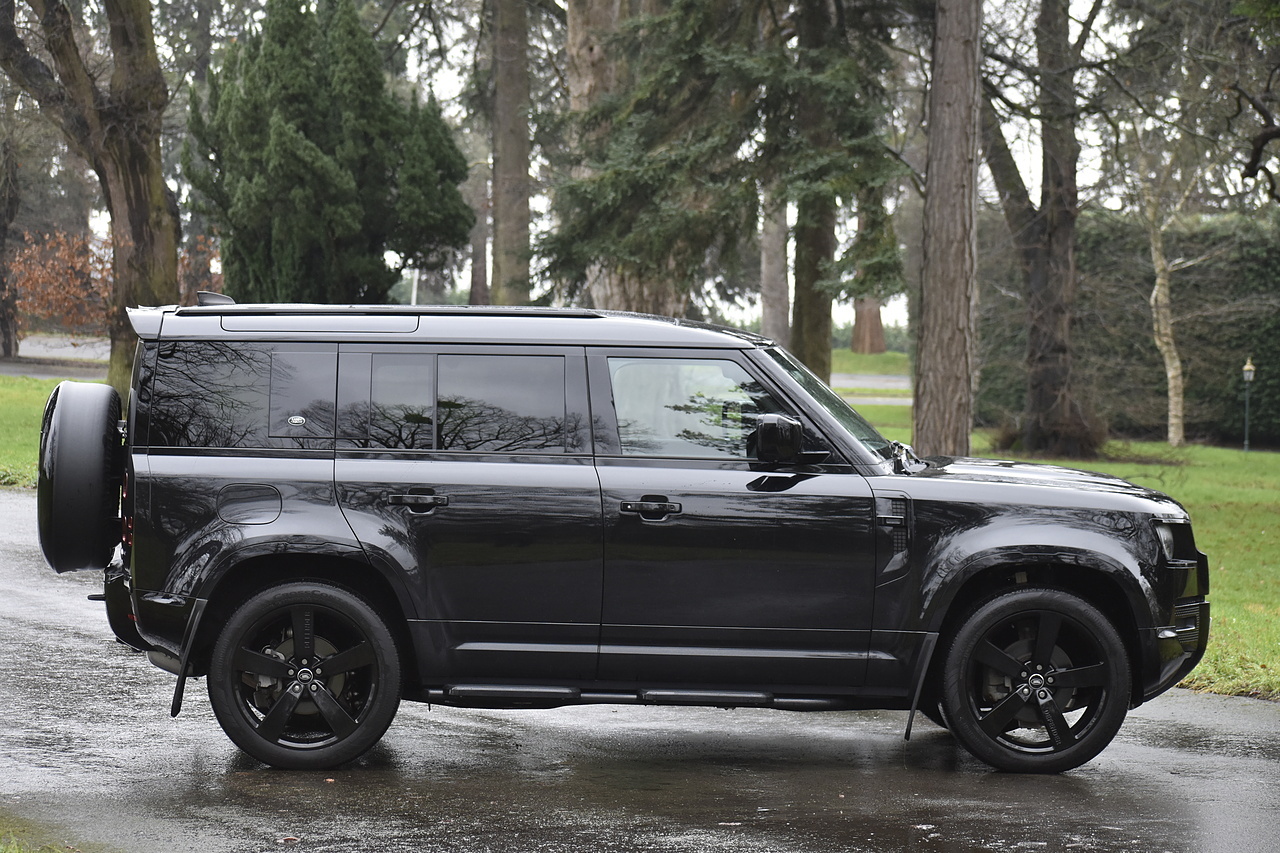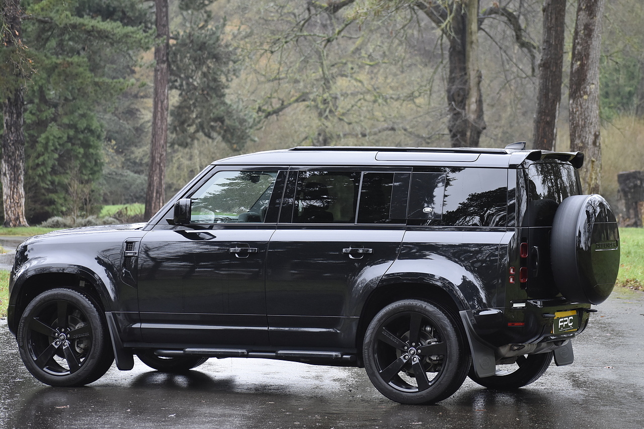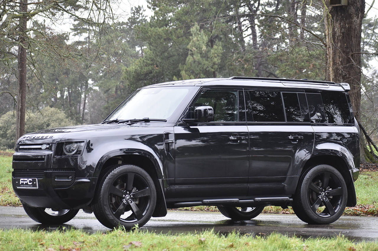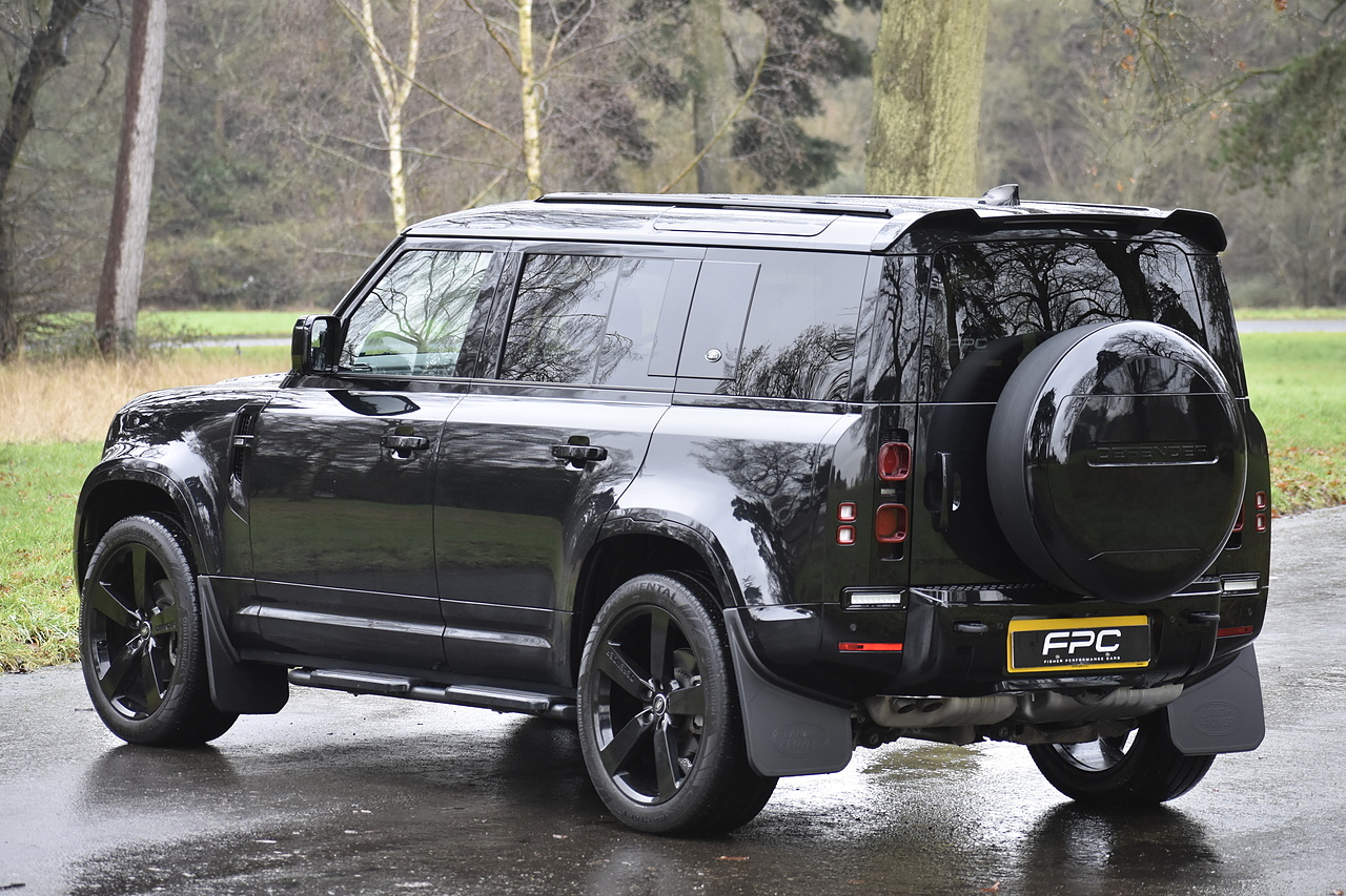 Fisher Performance Cars are proud to offer for sale this Land Rover Defender D250 SE finished in Santorini Black over Black leather interior. This example is presented in excellent condition throughout and boasts only 1 owner from new. Specification wise, this Defender is fitted with a Sliding Sunroof, 22" Gloss Black alloys, full exterior Black Pack, Roof Spoiler, Grille Light, LED Side Vents, Fixed Black side steps and upgraded reverse lights. Servicing wise, this has already had it's first 24 month service so isn't due until October of 2026.