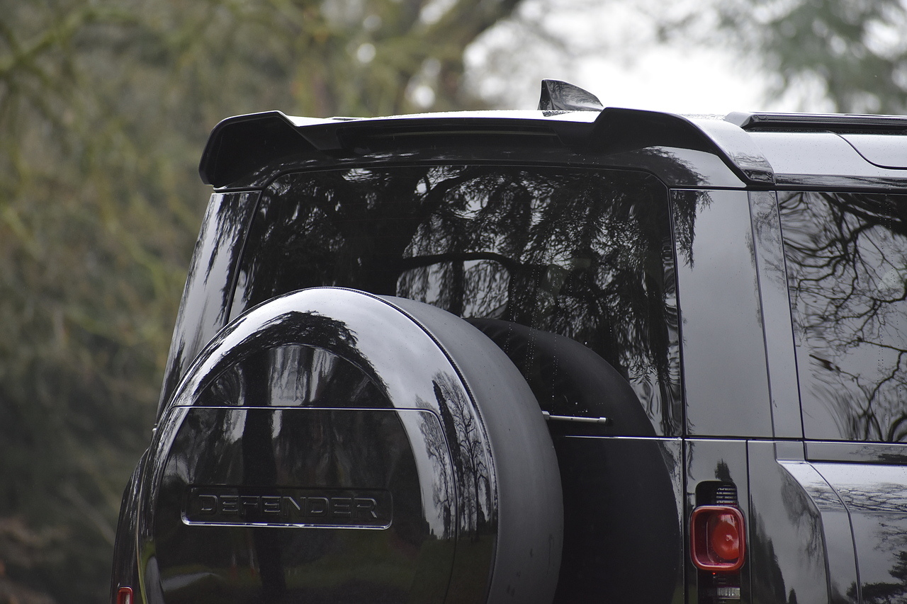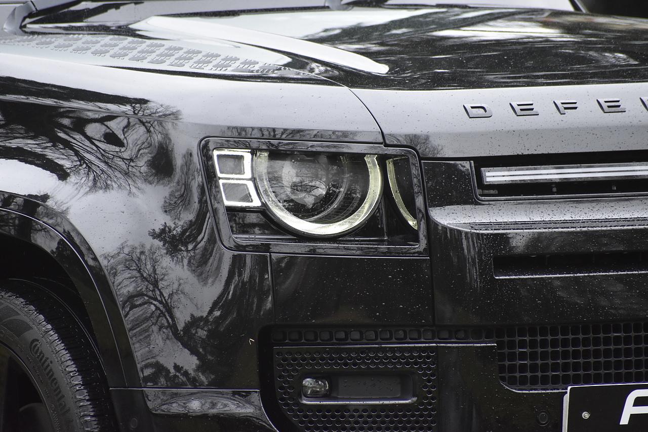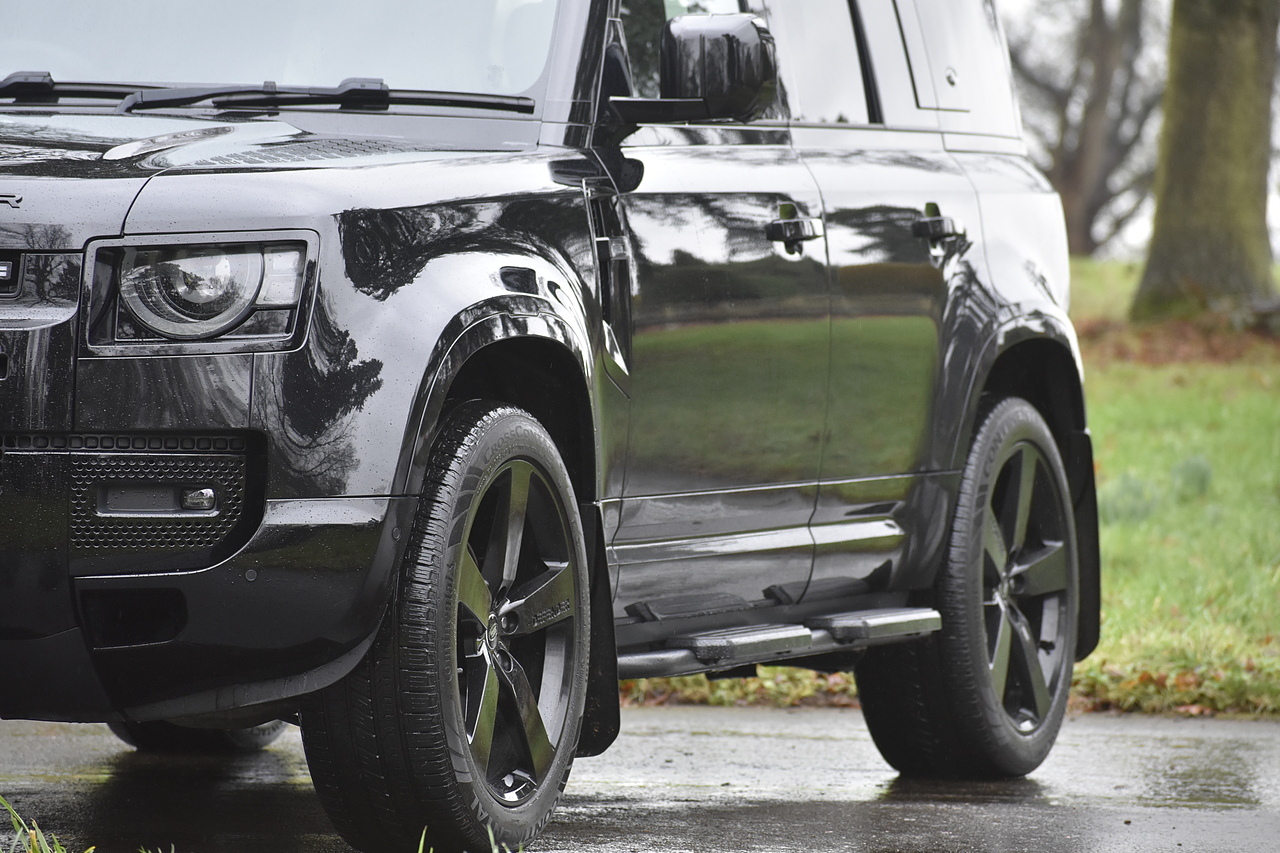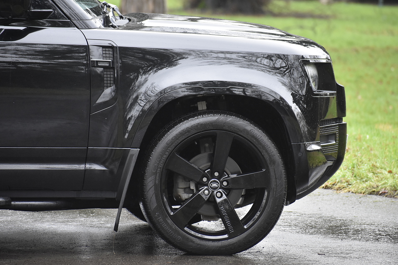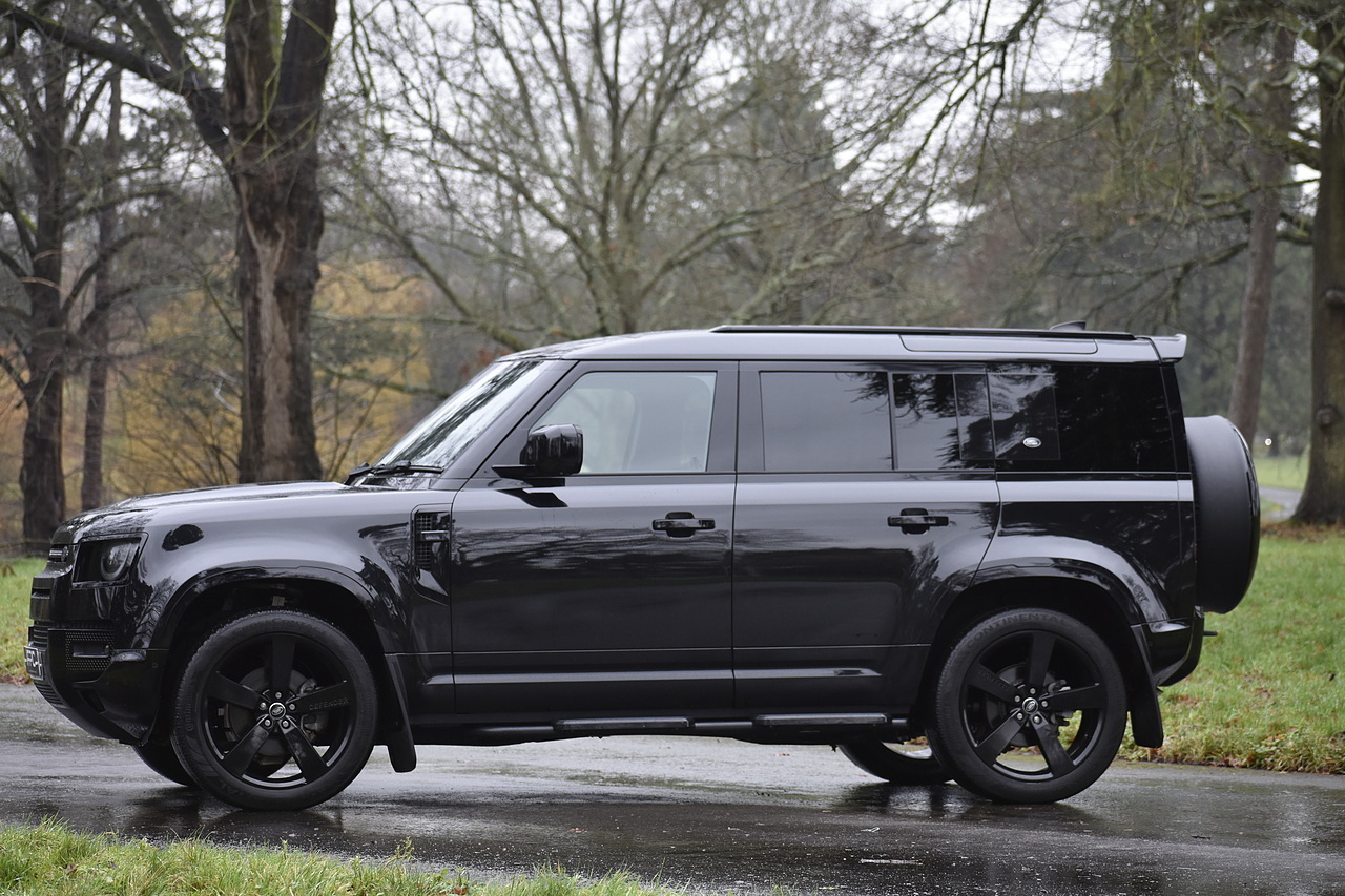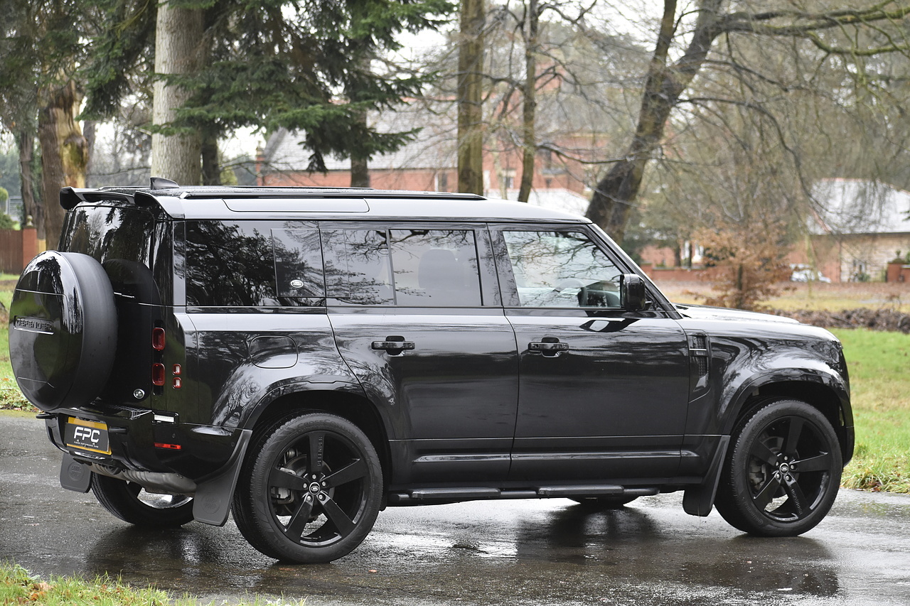 Fisher Performance Cars are proud to offer for sale this Land Rover Defender D250 SE finished in Santorini Black over Black leather interior. This example is presented in excellent condition throughout and boasts only 1 owner from new. Specification wise, this Defender is fitted with a Sliding Sunroof, 22" Gloss Black alloys, full exterior Black Pack, Roof Spoiler, Grille Light, LED Side Vents, Fixed Black side steps and upgraded reverse lights. Servicing wise, this has already had it's first 24 month service so isn't due until October of 2026.