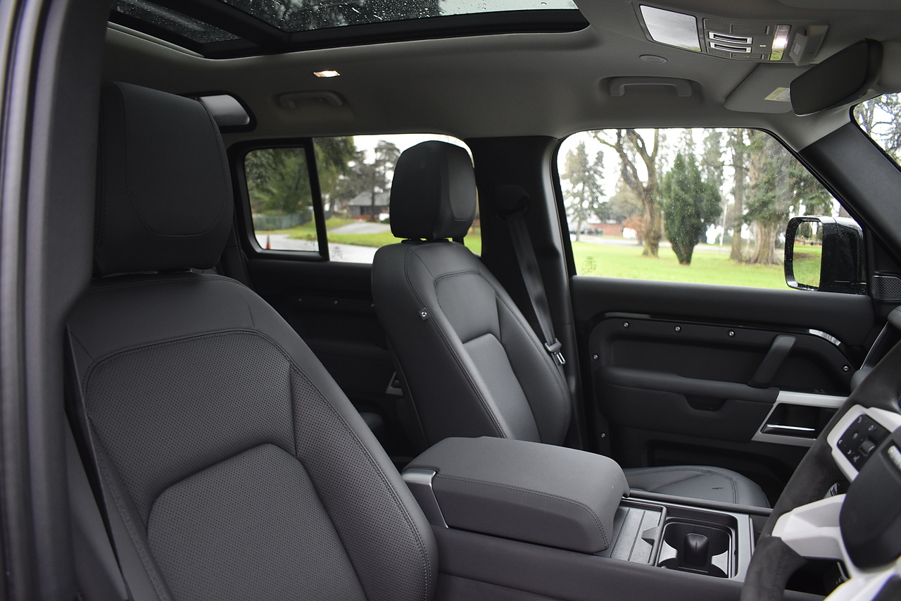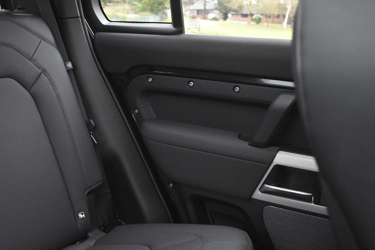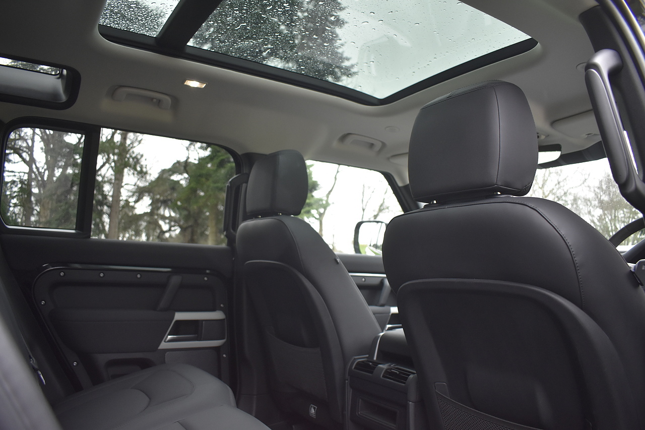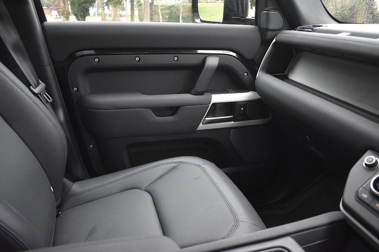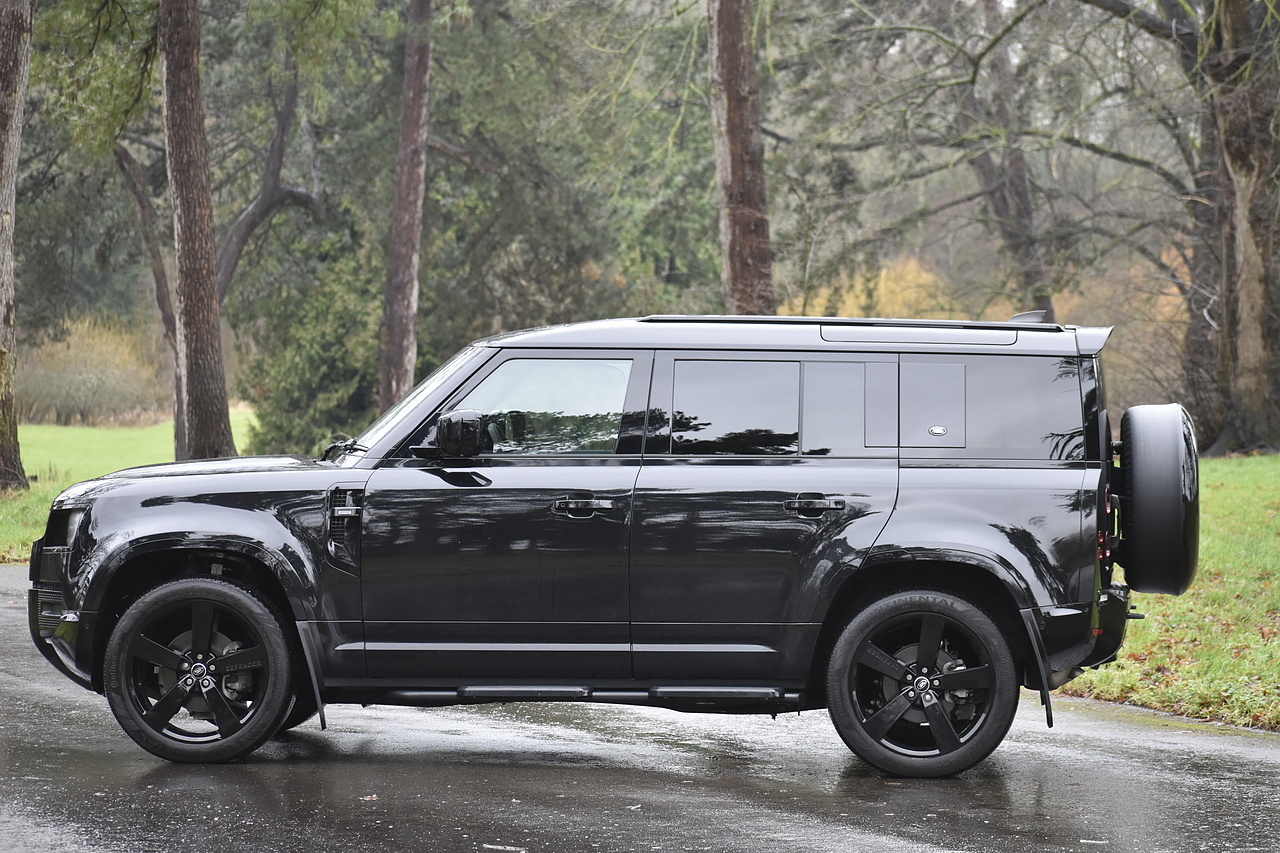 Fisher Performance Cars are proud to offer for sale this Land Rover Defender D250 SE finished in Santorini Black over Black leather interior. This example is presented in excellent condition throughout and boasts only 1 owner from new. Specification wise, this Defender is fitted with a Sliding Sunroof, 22" Gloss Black alloys, full exterior Black Pack, Roof Spoiler, Grille Light, LED Side Vents, Fixed Black side steps and upgraded reverse lights. Servicing wise, this has already had it's first 24 month service so isn't due until October of 2026.