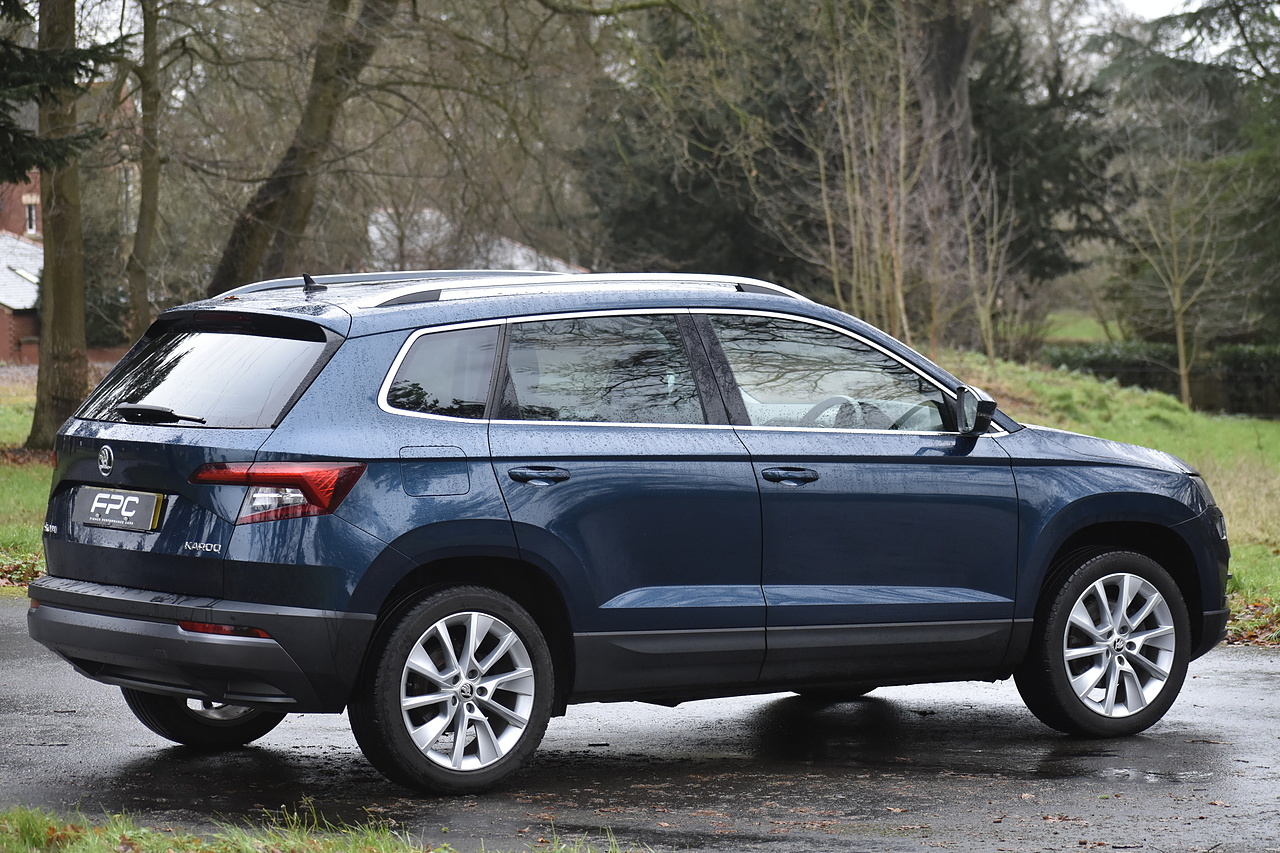 Fisher Performance Cars are proud to offer for sale this Skoda Karoq SE L finished in Petrol blue metallic over Black Alcantara interior. This example is presented in very good overall condition and has 9 Skoda services with the most recent being carried out in November 2025 @ 53430 miles. This Skoda represents a wonderful mid-sized SUV, with great interior and boot space for all your families needs!