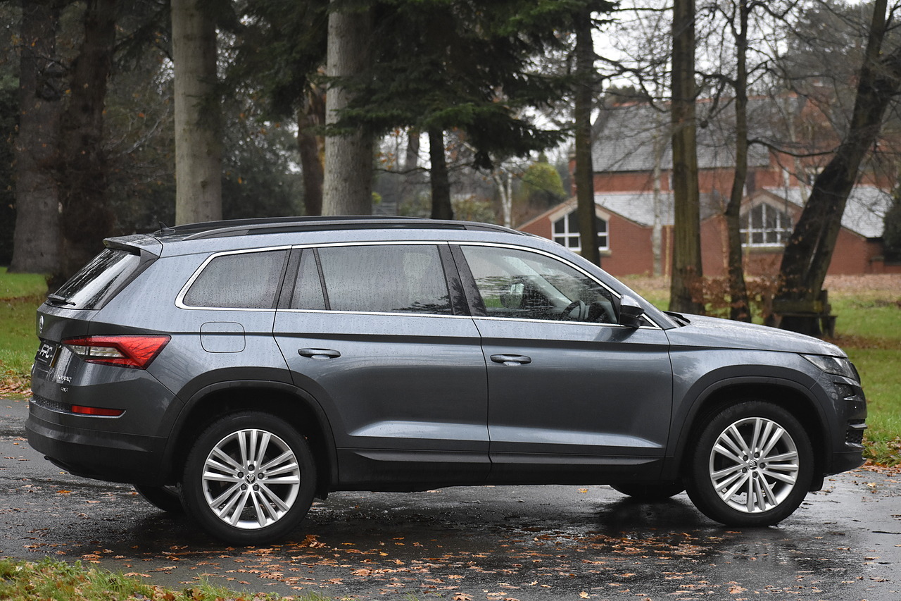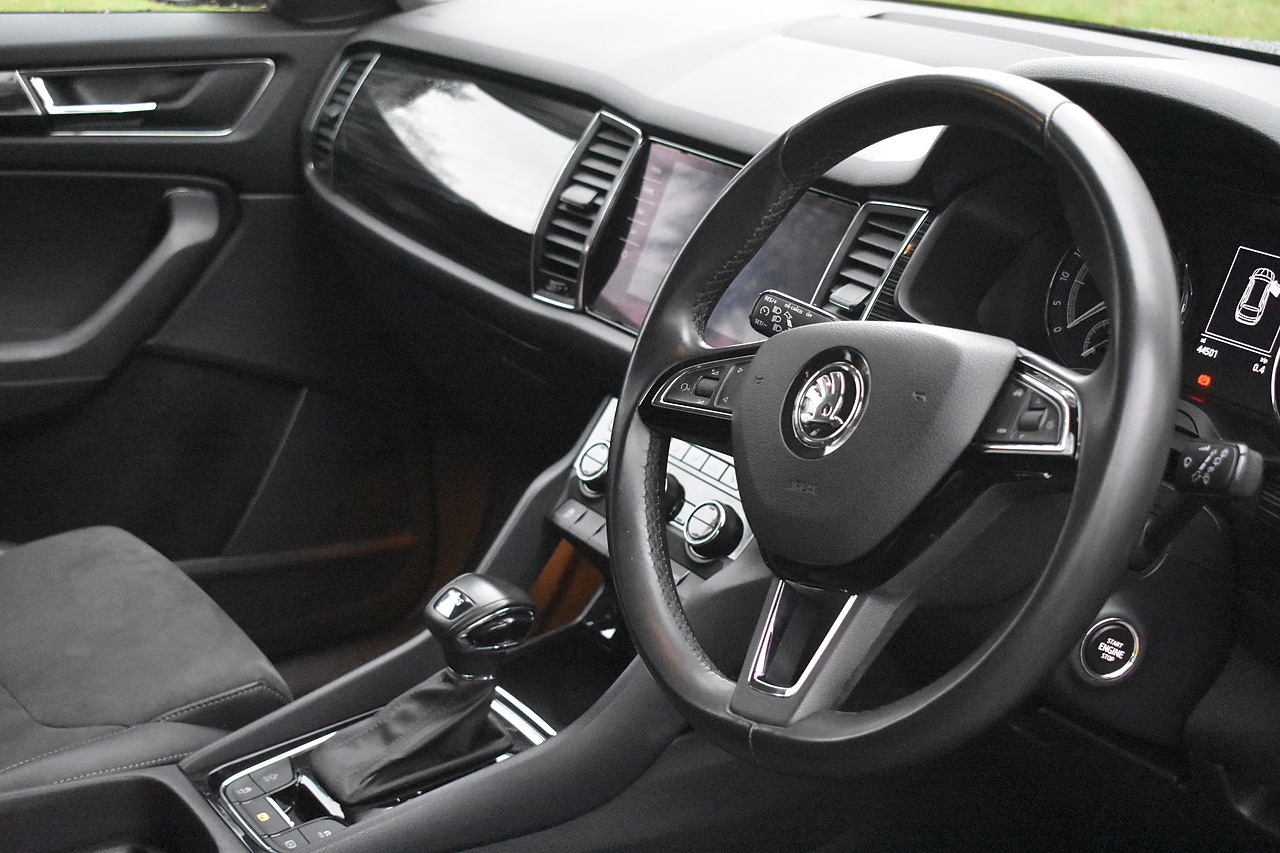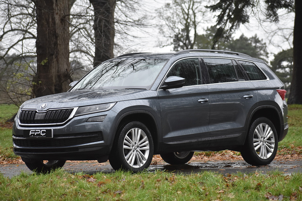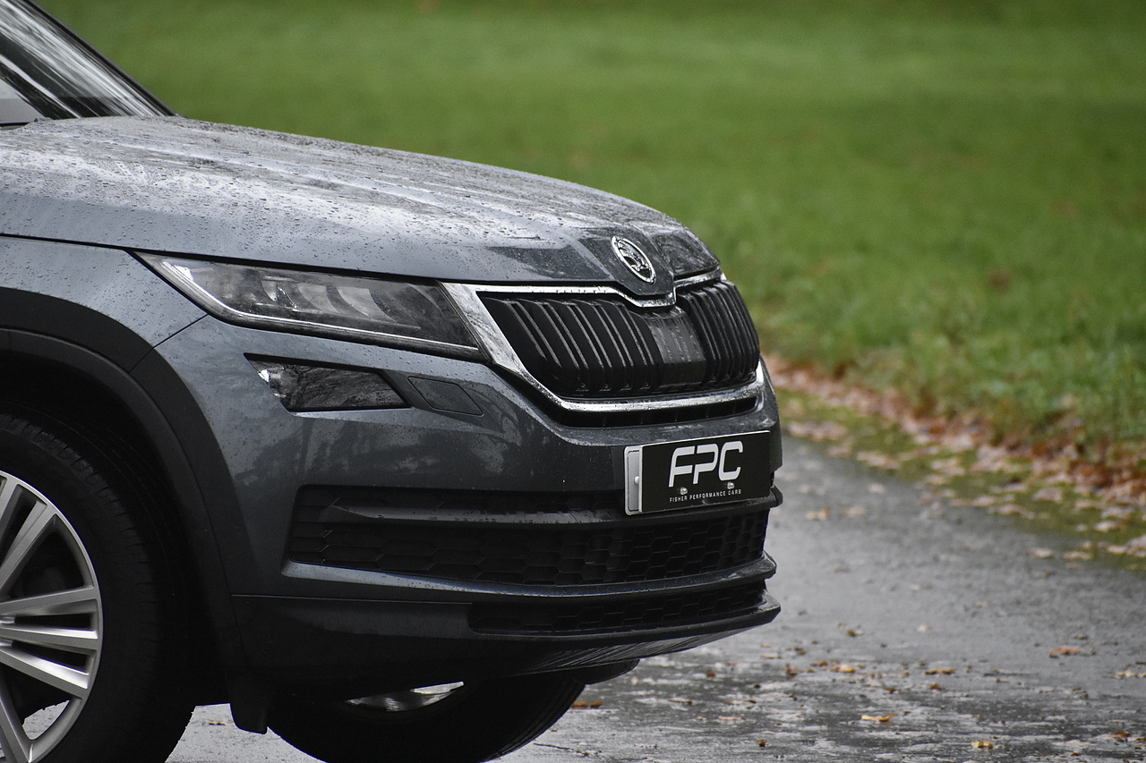 Fisher Performance Cars are proud to offer for sale this Skoda Kodiaq 2.0 TDI SE L 4x4 Auto finished in Quart Grey over Black Microsuede/leather. This example boasts an AWD system and slick DSG gearbox, resulting in a capable and comfortable, all round family car. We have a fully documented Skoda service record with the most recent having being carried out only a few hundred miles ago in November 2025.