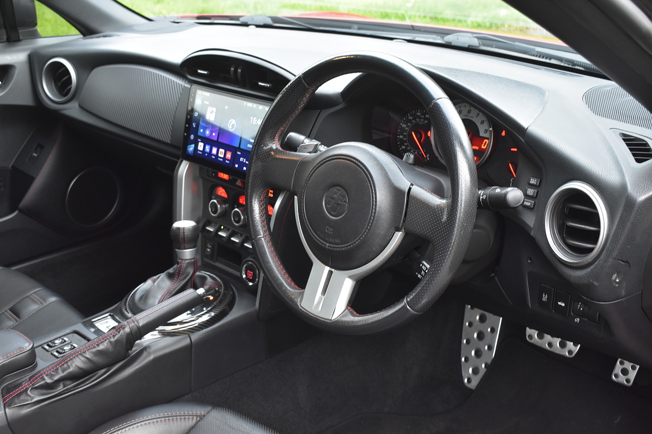 Fisher Performance Cars are proud to offer for sale this Toyota GT-86 finished in Red over Black leather interior. This example is presented in good condition all round with some tasteful aesthetic modifications including: Smoked LED Front and Rear lights (original provided), Apple Carplay/Android Auto LED screen (original provided), Stainless intake pipe (original provided), TRD Sportivo Shocks and springs, tinted windows and wrapped roof, Carbon effect gearstick surround and shark fin aerial cover and Black aluminium nobs. The previous owner only ever ran the car on 99 octane fuel and made sure to keep revs under 3000rpm until warm, a true reflection of a well looked after vehicle.